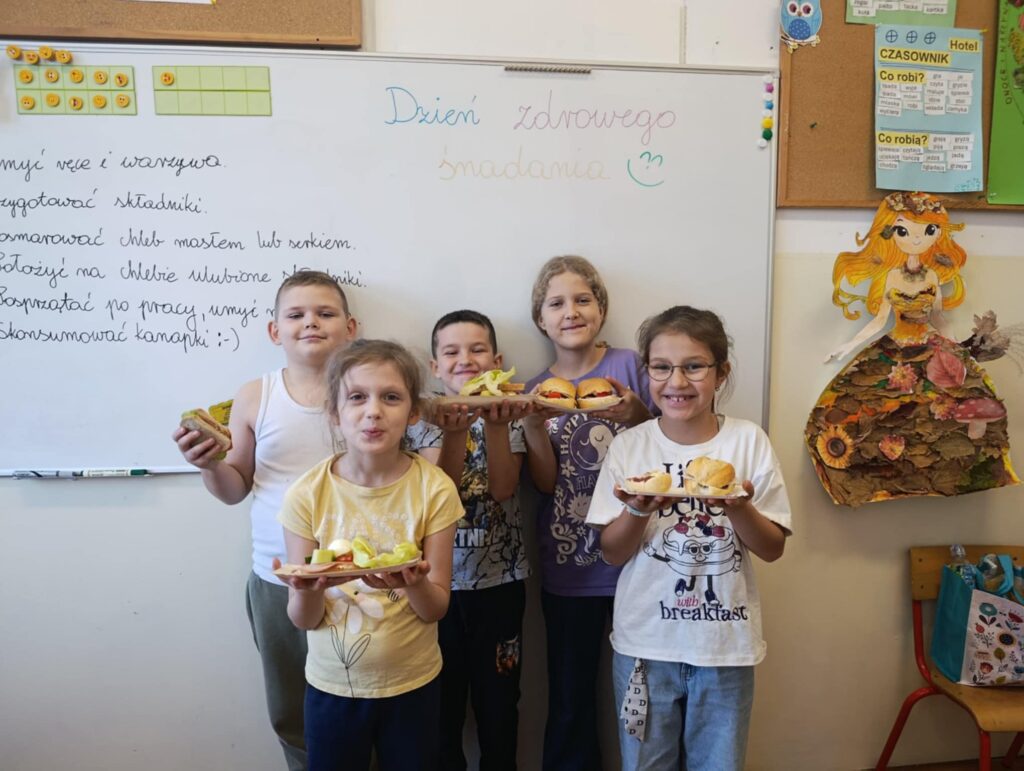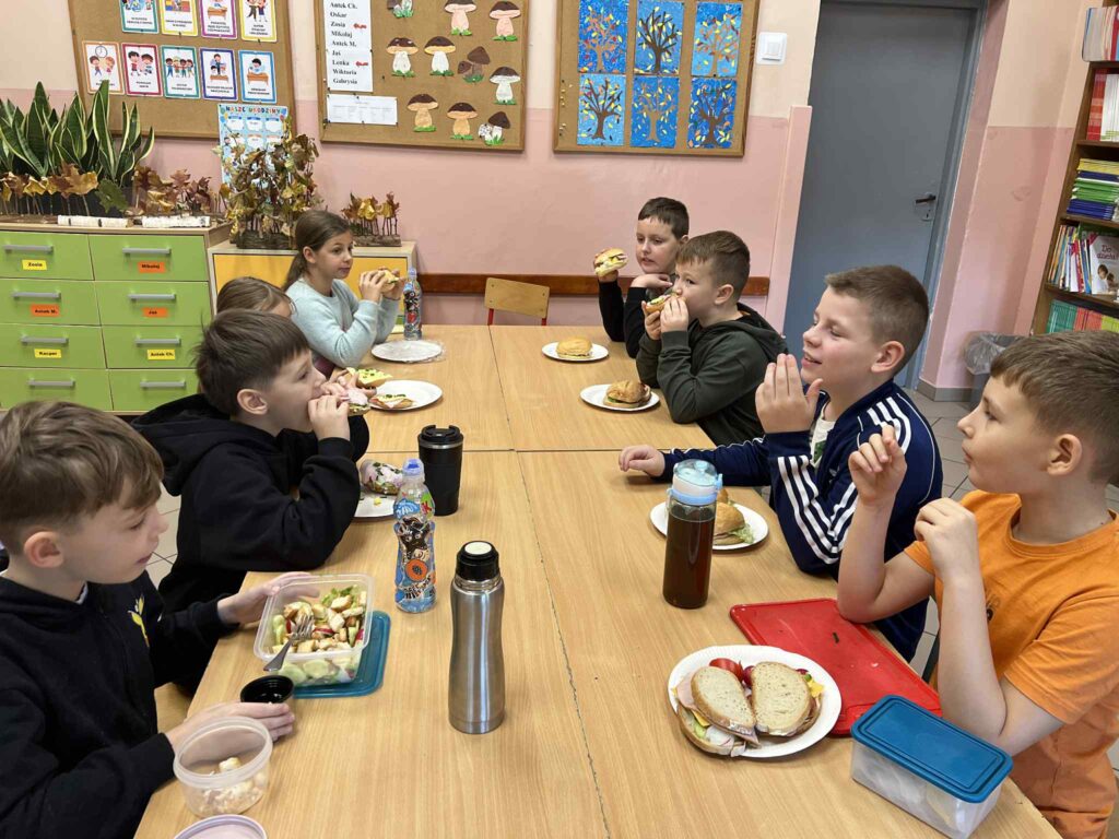 W tym roku wyjątkowo dzień wcześniej nasi uczniowie z klasy drugiej i trzeciej, przygotowali z przyniesionych produktów smaczne i kolorowe, a przede wszystkim zdrowe kanapki, które późnej zjedli ze smakiem podczas wspólnego klasowego śniadania.