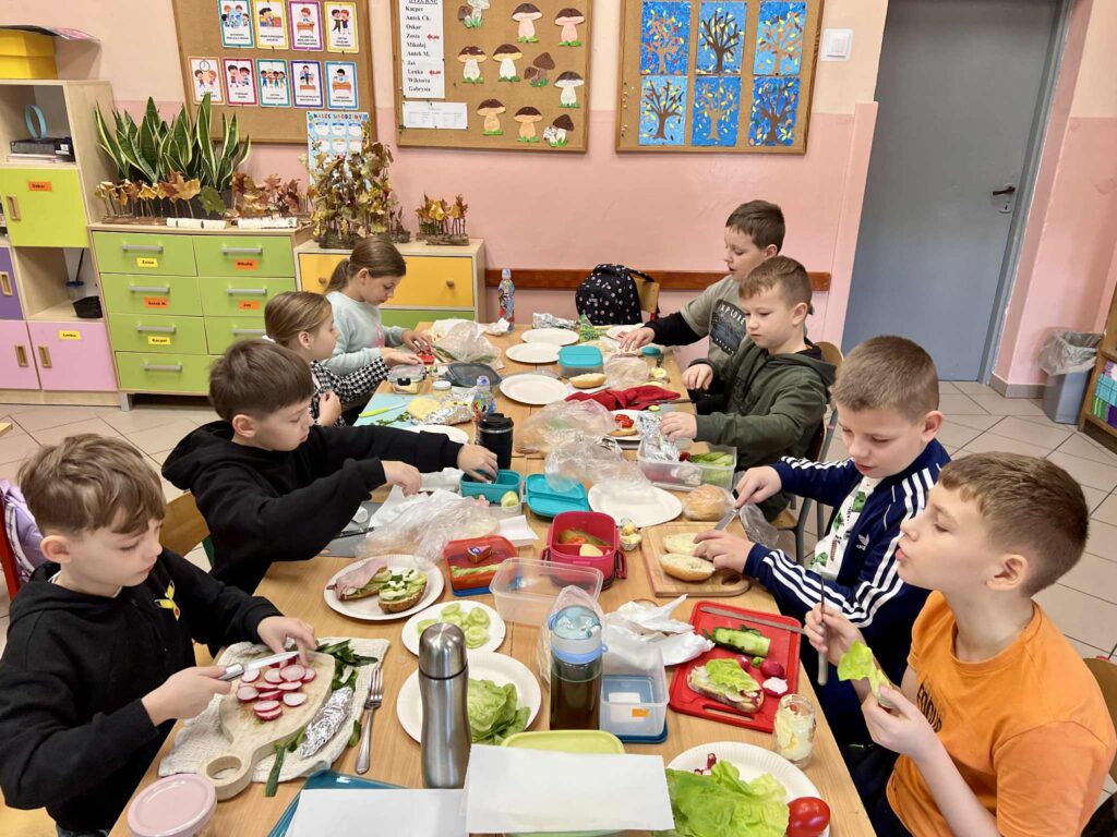 Na ich kanapach pojawiły się oprócz wędlin, jajek i sera również warzywa – szczypiorek, zielona pietruszka, sałata, pomidory, ogórki, papryka i rzodkiewka, które stworzyły aromatyczny klimat w klasie!