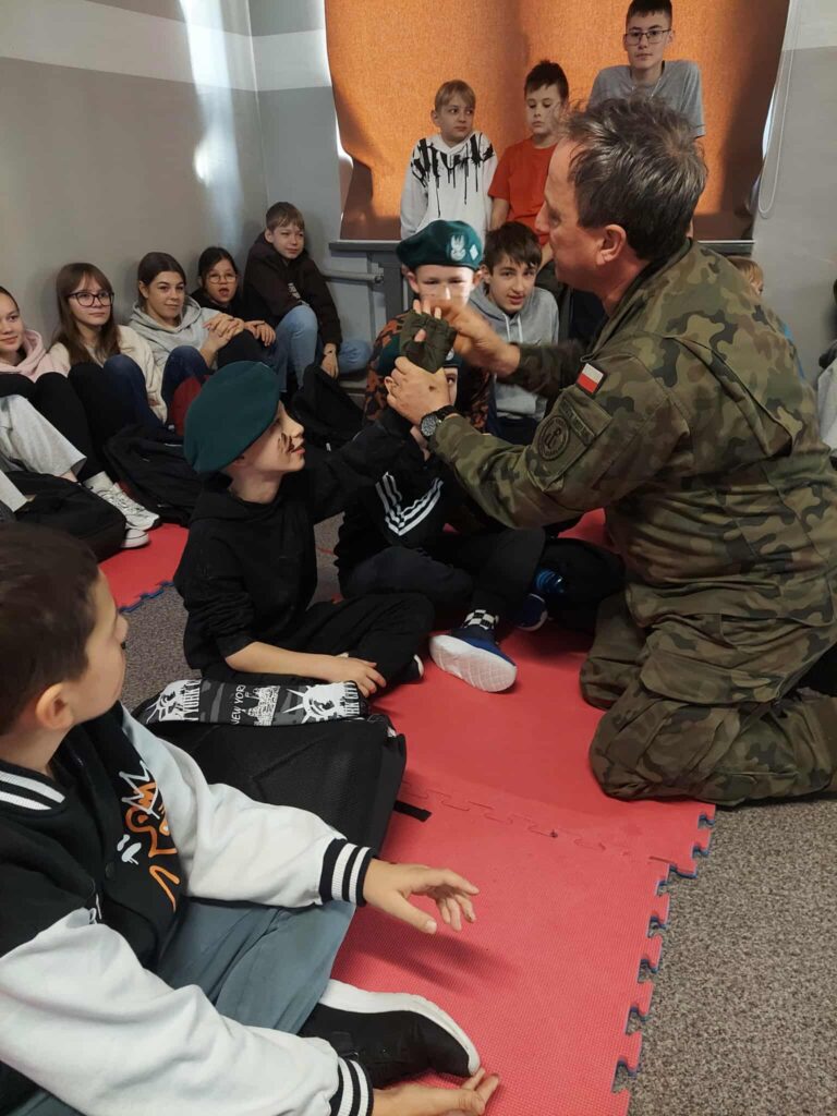 Pan Jacek Moskwa oraz Pan Łukasz Bicz – żołnierze Wojska Polskiego przeprowadzili w naszej szkole zajęcia, na których uczniowie zapoznali się m.in. z zasadami alarmowania, sposobami wzywania pomocy, podstawami ewakuacji i odnajdowania schronienia, technikami udzielania pierwszej pomocy, budowania odporności na zagrożenia. Żołnierze przekazali wiedzę w sposób bardzo ciekawy oraz dostosowany do wieku uczniów.