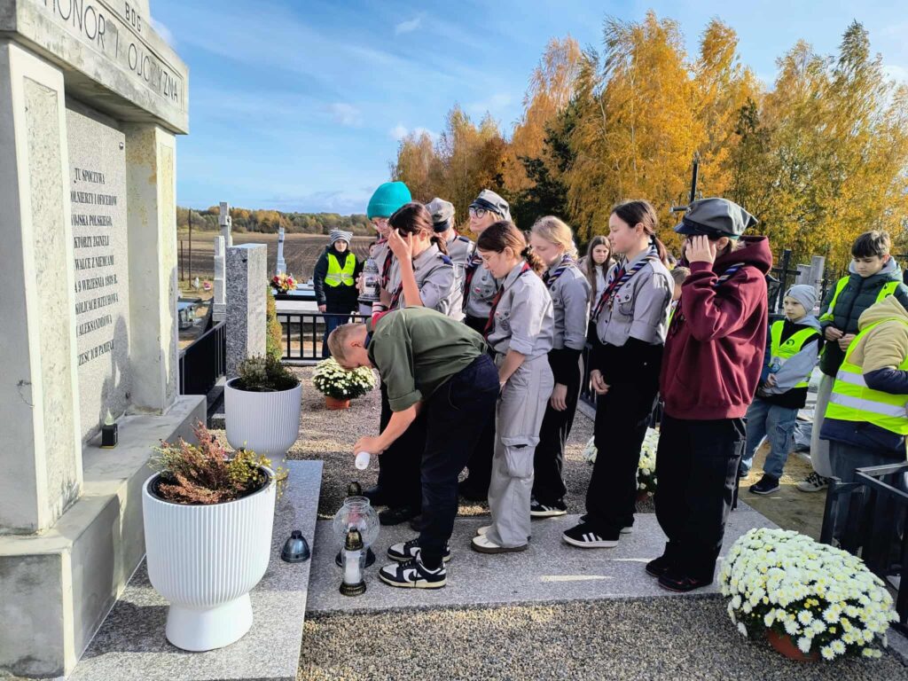 W środę, tuż przed Świętem Wszystkich Świętych, udaliśmy się z harcerzami na pobliski cmentarz w Grabowcu, aby zapalić znicze na grobach żołnierzy, którzy polegli w walce z Niemcami.