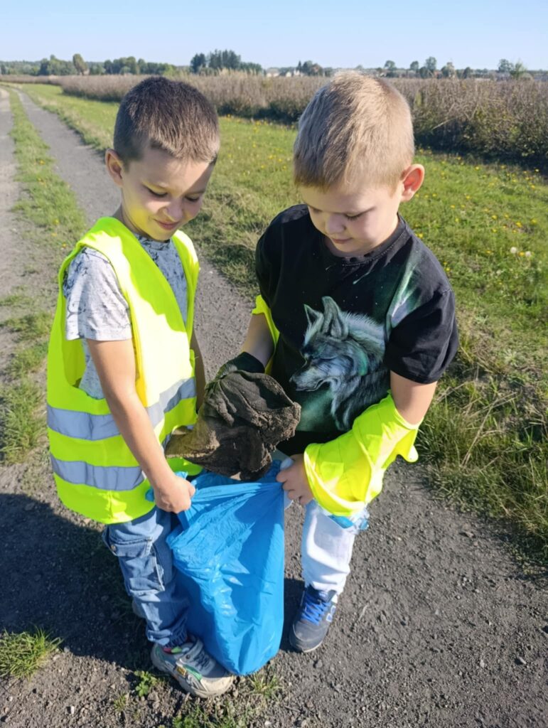 Dnia 22 września 2025 r. uczniowie klas 1- 3 naszej szkoły włączyli się w ogólnopolską akcję ,,Sprzątanie Świata – Polska 2025 ”. Uczniowie wraz z nauczycielami zaopatrzeni w worki foliowe i rękawice udali się w teren, aby posprzątać wybrane tereny blisko szkoły.