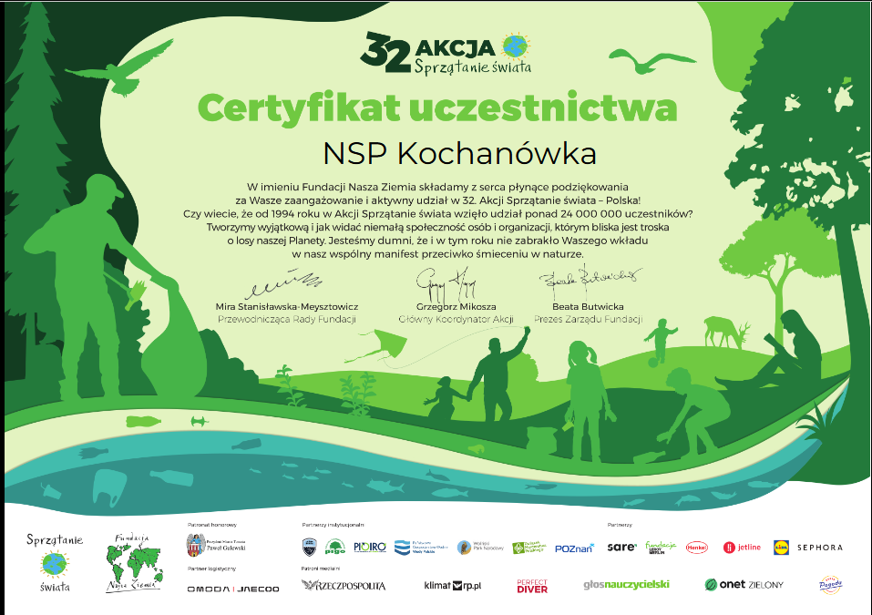 ,,DZIK NIE ŚWINI W LESIE. A TY ?”- pod takim hasłem przebiegła tegoroczna akcja. W kontakcie z naturą należy pamiętać o kulturze. Dotyczy to dobrych nawyków i naszego zachowania, takiego, jak na przykład niepozostawianie śmieci na łonie natury, czy wybieranie takich aktywności, które minimalizują negatywny wpływ człowieka na przyrodę. Akcja ,,Sprzątanie Świata” ma na celu oczyszczenie otoczenia z odpadów i sprawienie, że każdemu będzie żyło się lepiej oraz zdrowiej.