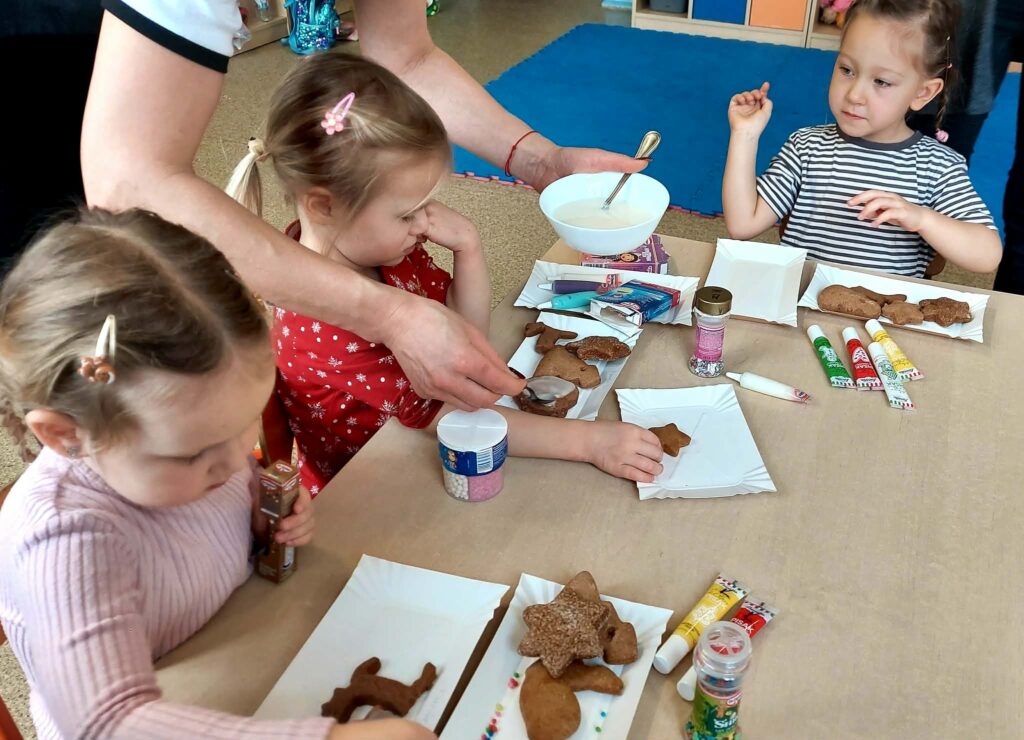 Pierniczki zostały już dzień wcześniej przygotowane przez Koło Gospodyń Wiejskich w Kochanówce. Składamy serdeczne podziękowania , że dzięki życzliwości naszych zaprzyjaźnionych Pań z KGW dzieci miały okazję zintegrować się, miło spędzić czas i przy okazji się czegoś nauczyć.