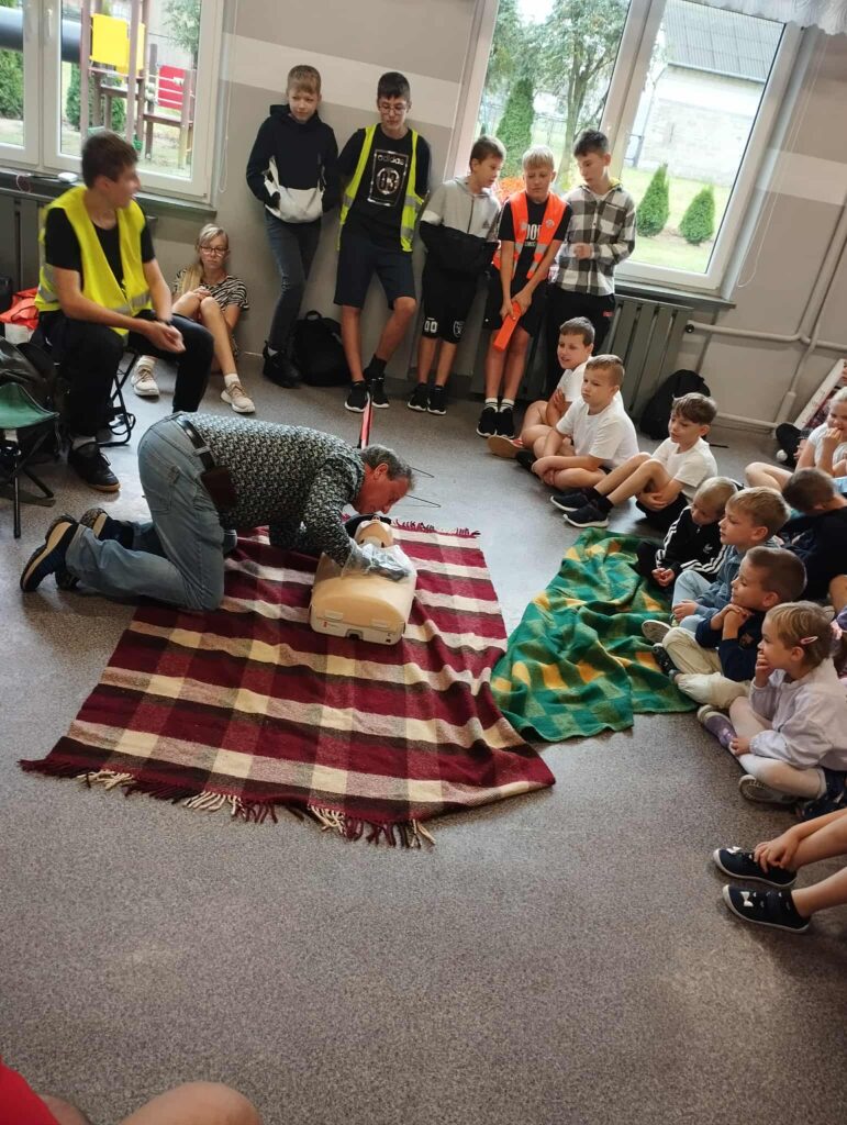 W piątek 19 września zorganizowano w naszej szkole szkolenie z zakresu udzielania pierwszej pomocy. Spotkanie uczniów klas 1-8 z Panem Jackiem Moskwą obejmowało zarówno część teoretyczną, jak i praktyczną.