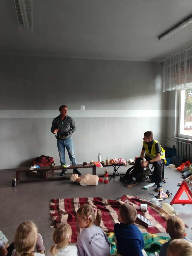 Poprzez ciekawe formy i metody pracy, jakie prezentował Pan Jacek wszyscy mogli nauczyć się udzielania i wzywania pomocy. Ćwiczenia obejmowały udzielanie pierwszej pomocy – jak prawidłowo wykonać RKO; w jaki sposób zastosować defibrylatory AED; jak postąpić w stanach nagłych: zakrztuszenia, zawał serca, w jaki sposób udzielić pierwszej pomocy, gdy wystąpią omdlenia, krwawienia z nosa, urazy kostno – stawowe, odmrożenia lub poparzenia.