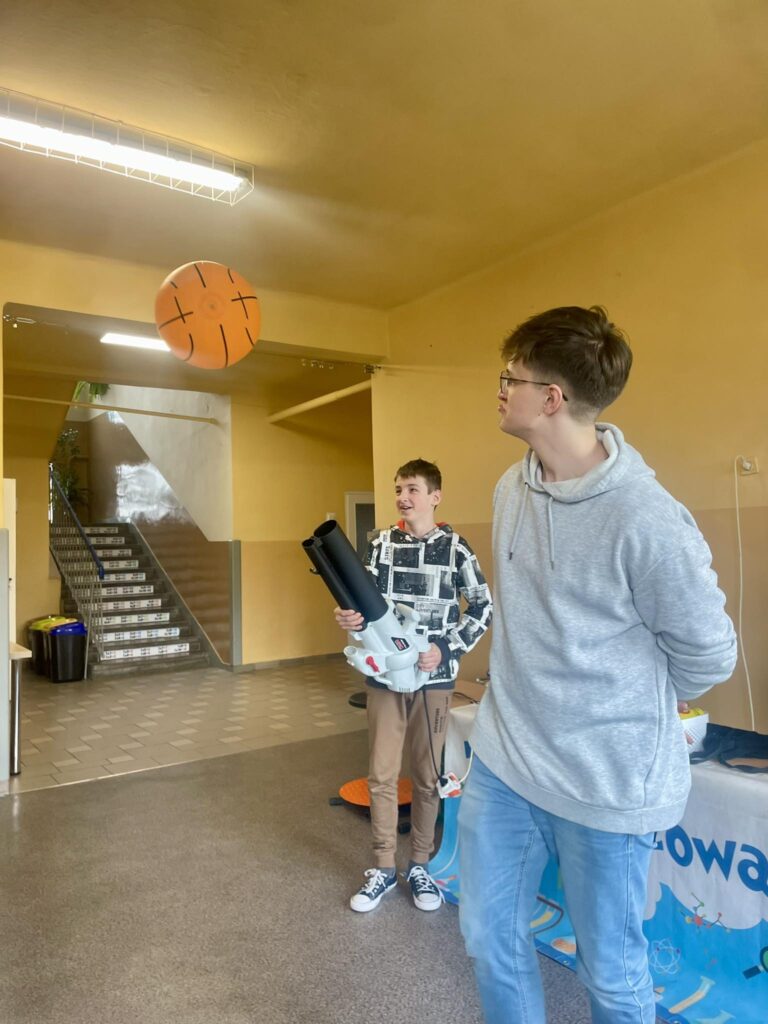 Tematem zajęć były właściwości fizyczno-chemiczne wybranych gazów. Prezentujący pokazał wiele ciekawych doświadczeń z wodorem, azotem, tlenem, parą wodną. W trakcie tej cennej lekcji uczniowie starali się spowodować wir w butelce z wodą, zobaczyli wybuch wytworzonego domowym sposobem wodoru. Obserwowali doświadczenia z użyciem mieszanki propan – butan oraz lewitującą piłkę. Prowadzący podkreślił, jak ważne jest bezpieczne obchodzenie się z ogniem i korzystanie z gazu w gospodarstwie domowym. Bardzo interesującymi eksperymentami była rura Bernoulliego. Dzieci bardzo aktywnie brały udział